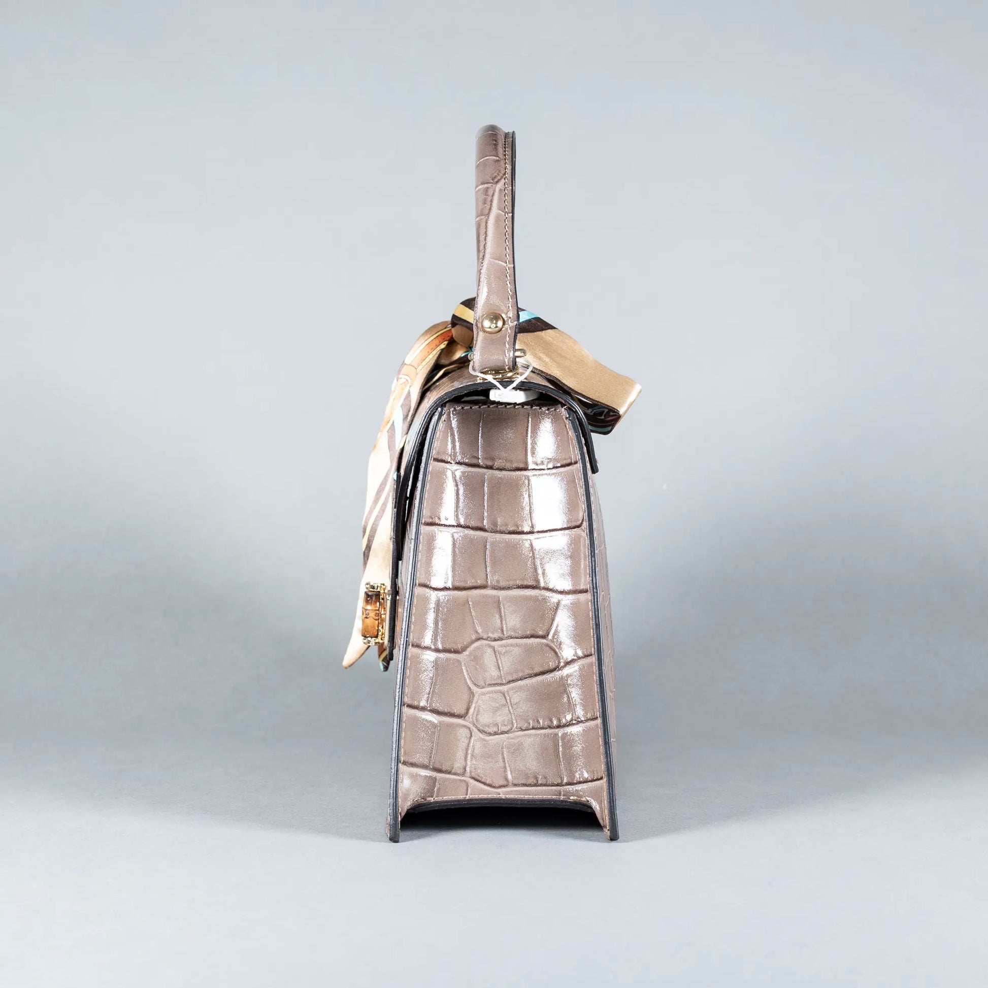 Verleihen Sie Ihrem Stil mit dieser handgemachten Handtasche aus Italien aus geprägtem Kalbleder und dem beigefügten Seidenschal für besondere Anlässe eine exotische Note. Einzigartige Qualität und ein Hauch von Luxus machen diese Tasche zum perfekten Accessoire für jeden Anlass.